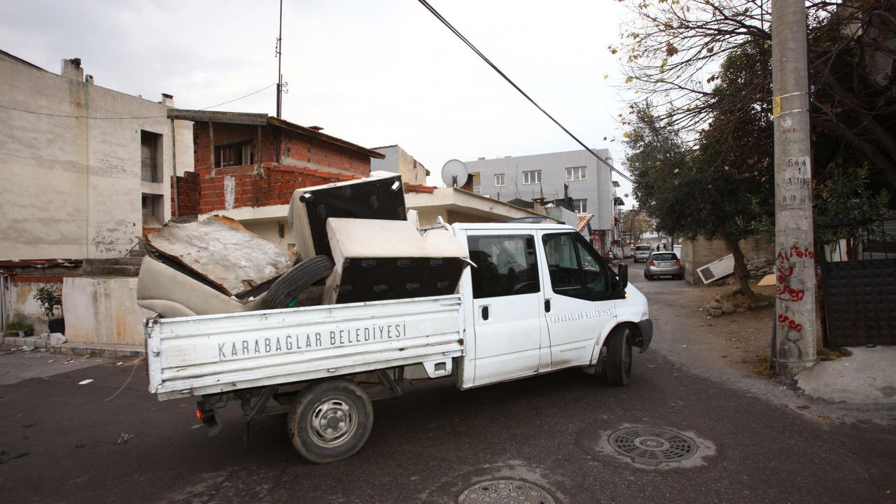 Belediye ekipleri Karabağlar’da günde ortalama 12-14 kamyonet dolusu mobilya atığı topluyor. Bu yoğunluğa rağmen hizmetin aksamadan devam edebilmesi için planlı çalışmanın ve vatandaş işbirliğinin önemi vurgulandı.