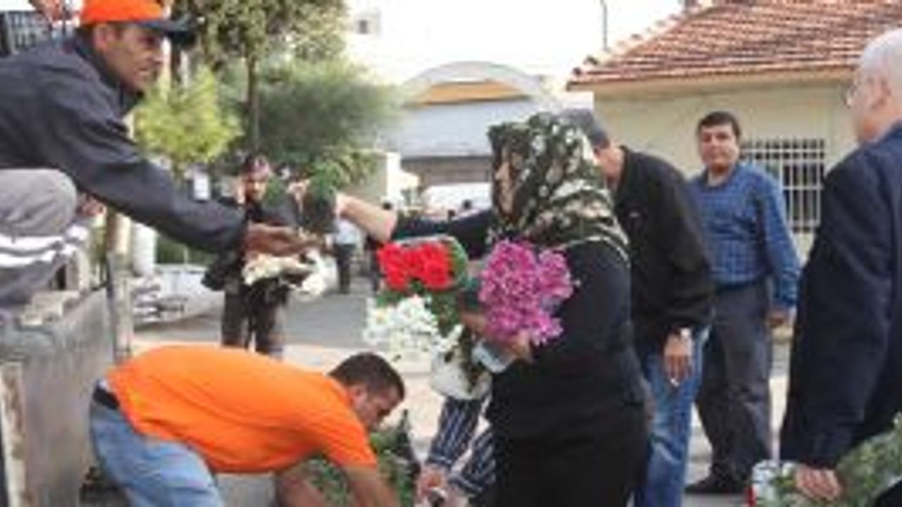 İZMİR - İlçe sınırlarında bulunan Paşa Köprü Mezarlığı, Yeşilyurt Kooperatif Evleri Mezarlığı ve Uzundere Mezarlığı'nda, kabir ziyaretine gelen vatandaşlara 100 bin kalıcı çiçek dağıtıldı. Ekipler, hercai menekşe, leylak, aslanağzı gibi kalıcı çiçekleri vatandaşlara dağıtarak, isteyenlere ise çiçeklerin dikimi konusunda yardımcı oldu.