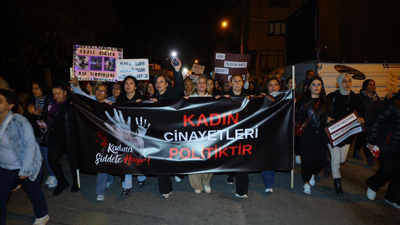 “Kaybettiğimiz her can için, hak, hukuk ve adalet için buradayız” diyen Kınay, “Gülümsemesi yarım kalan, sözü yarım kalan, hayatı yarım bırakılan kadınlar bugün bizimle. Onların sesi bizim sesimizdir, mücadeleleri bizim mücadelemizdir. Sokaklar bizim, meydanlar bizim. Eşitlik, adalet ve umut için sesimizi büyüteceğiz. Kadın cinayetleri politiktir; kadınlar susmayacak, kadınlar korkmayacak. Karabağlar’ın karanlık sokaklarını bu gece birlikte aydınlattık ve bundan sonra da karanlık olan her köşeyi birlikte aydınlatmaya devam edeceğiz” diye konuştu.
