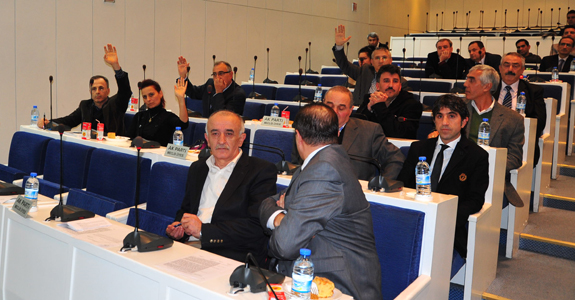 Önergeye komisyonda ret oyu veren Mehmet Emin Aşkın söz alarak komisyon raporunun okunmasını talep etti. Kürüm komisyon raporunu okutmayacağını belirterek oylamaya geçmek istedi. AK Partili Erol Körüklü de usule ilişkin itirazı olduğunu, oylamanın her meclis üyesinin tek tek isimleri okunarak yapılmasını talep etti. Körüklü'nün önerisi kabul görmeyince oylamaya geçildi. Oylamada AK Partili Mehmet Çelik, Serdar Kuçan, Ünal Öztürk, Hızır Seymenoğlu ve Faik Dalgıç evet oyu kullanırken AK Partili Erol Körüklü, Necati Polat, Şule Şenelmas ve Mehmet Emin Şaknı ret oyu kullandı. AK Partili Leyla Okyay ile Şemsettin Günal ise çekimser kaldı.