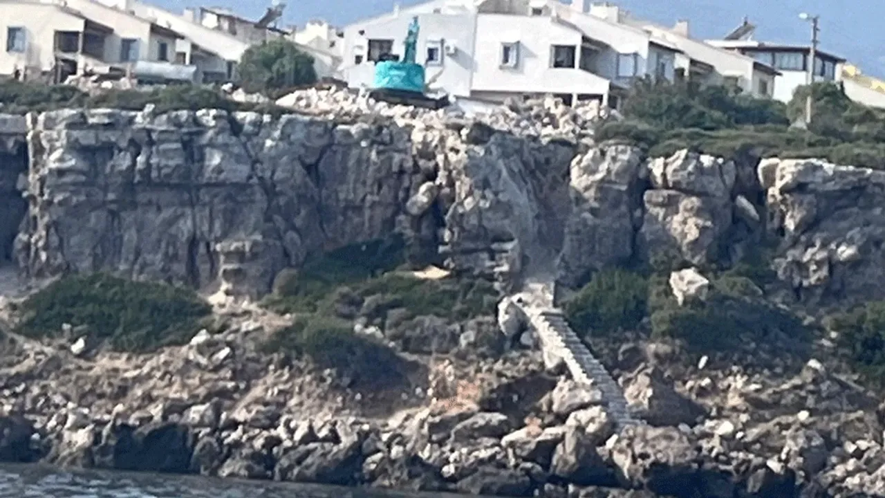 Güçlü Aydın Kooperatifleri S.S. Güçlü Saip Gayrimenkul İşletme Kooperatifi-Mimas Port tarafından satışa sunulan proje içeriğinde (https://www.gucluaydin.com/wp-content/uploads/2025/09/MIMAS-PORT.pdf) falezleri yaran bahse konu merdivenlerin proje çizimlerinde de yer aldığı görülmektedir. Üzeri şimdilik örtülü görünen merdivenlerin ileride yine beton/ahşap görünümle karşımıza çıkması ve deniz kenarında da yine beton/ahşap bir platform/iskele yapılması kuvvetli bir olasılıktır. Kazının yapıldığı alan taş duvar vb. bir uygulamayla acil olarak kapatılmalıdır.