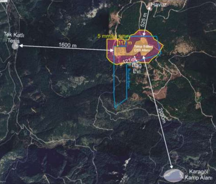 Faaliyet alanının tapu kayıtlarında “orman” arazisi olarak geçtiği, ayrıca 1/100.000 ölçekli Çevre Düzeni Planı’nda da “orman alanı” statüsünde bulunduğu belirtildi.