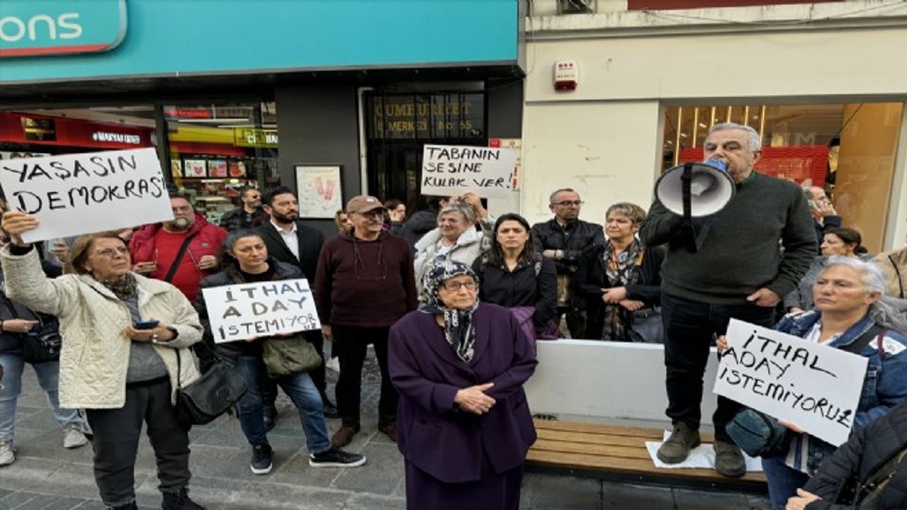 CHP Karşıyaka İlçe Başkanlığı önünde bir araya gelen partililer, 'İthal aday istemiyoruz', 'Tabanın sesine kulak ver' yazılı dövizlerle slogan attı.
