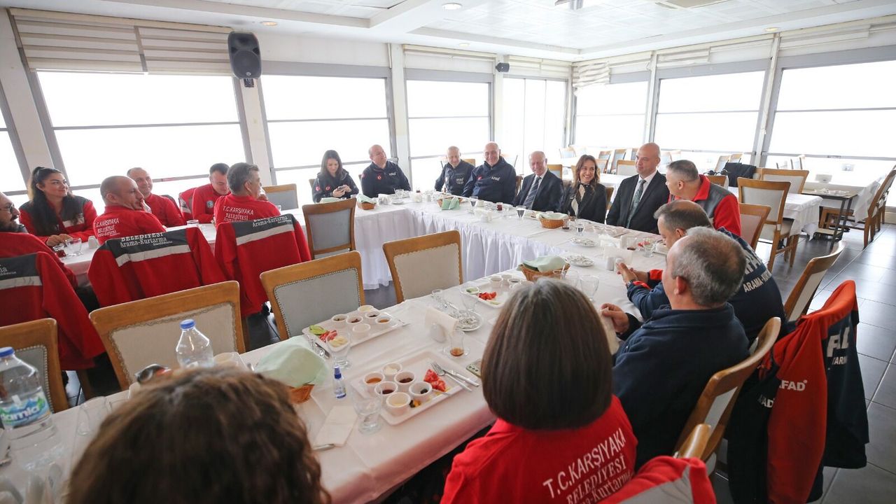 Karşıyaka Belediyesi, AFAD İzmir İl Müdürlüğü tarafından yürütülen Kentsel Arama Kurtarma Akreditasyon eğitimlerini başarıyla tamamlayarak akreditasyon sürecinin önemli bir aşamasını geride bırakan Arama Kurtarma Ekibi için Zübeyde Hanım Nikah Sarayı’nda kahvaltı organizasyonu düzenledi. Karşıyaka Belediye Başkanı Yıldız Ünsal’ın ev sahipliğindeki buluşmaya; AFAD’dan Sorumlu Vali Yardımcısı İsmail Çorumluoğlu, AFAD İzmir İl Müdürü Nazif Ekinci, AFAD İzmir Birlik Müdürü Mahir Aydın Aktaş ve belediye bürokratları katıldı. Buluşmada, halihazırda yürütülen çalışmalar hakkında görüş alışverişinde bulunulurken, kurumlar arası iş birliğinin önemi de vurgulandı.