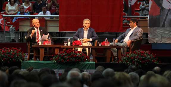 Karşıyaka Belediyesi ve Karşıyaka Platformu'nun ortaklaşa düzenlediği ve ülke gündeminin tartışıldığı program Karşıyakalılar tarafından büyük ilgiyle karşılandı. 5 bin kişilik tribün alanının yanı sıra, üç bin kişilik saha kısmı da tamamen doldu. Ellerinde Türk bayrakları ile marşlar söyleyen Karşıyakalılar, en çok ilgiyi Zülfü Livaneli'ye gösterdi.