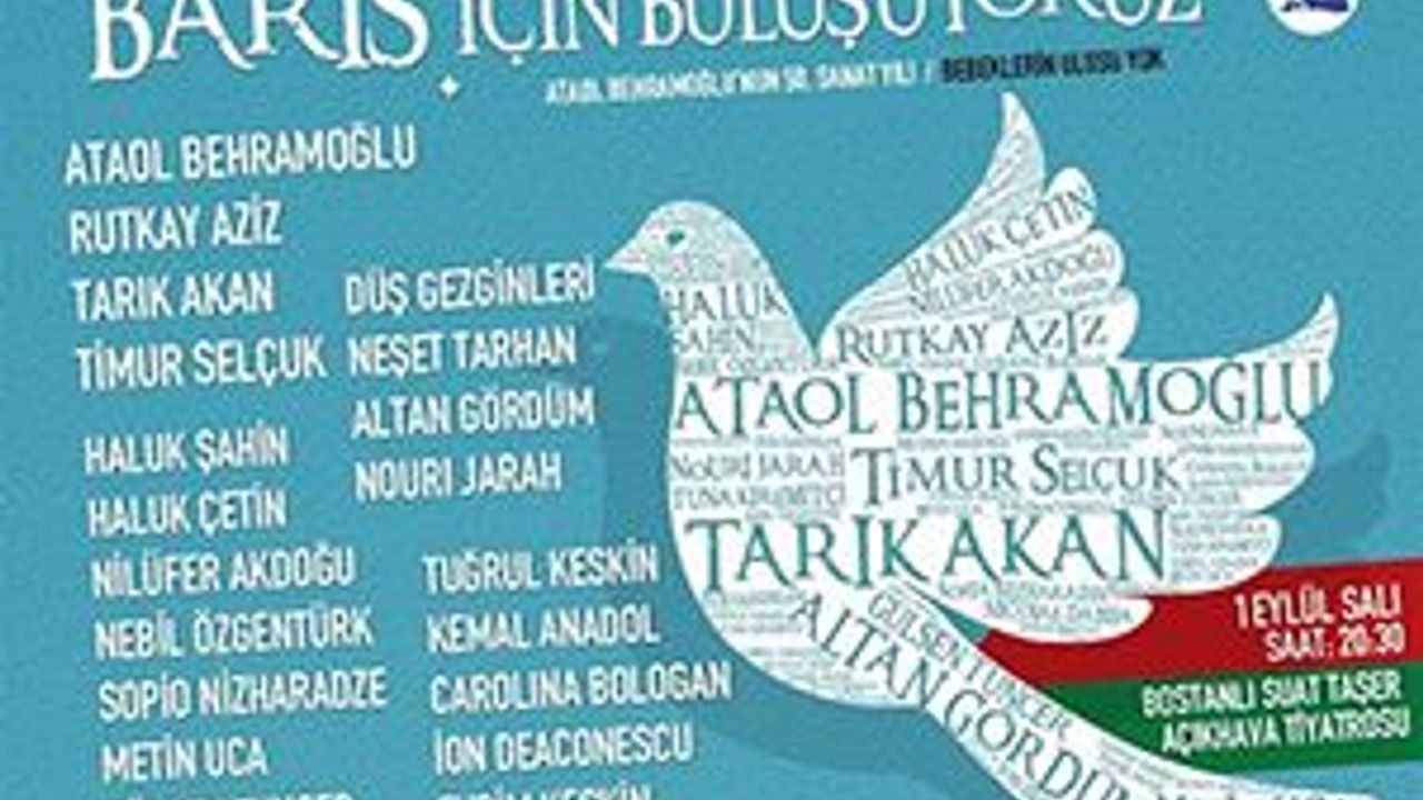İZMİR - Karşıyaka Belediyesi tarafından hazırlanan 1 Eylül Dünya Barış Günü etkinliğinde bu yıl ünlü isimler, önemli şairler, yazarlar, ses ve sinema sanatçıları sahne alacak. Bostanlı Suat Taşer Açıkhava Tiyatrosu'nda, 20.30'da gerçekleşecek muhteşem geceye; Tarık Akan, Rutkay Aziz, Timur Selçuk, Ataol Behramoğlu, Tuna Kiremitçi, Nebil Özgentürk, Metin Uca gibi ünlü sanatçılar katılacak. Romanya ve Fransa'dan ise Nikolae Dabija, Sofia Nazaridze, Nouri Jarah, Carolina Bologan ve İon Deaconescu gibi isimler de şiirler okuyarak önce Türkiye'ye sonra da dünyaya barış mesajları verecek. Programın öncesinde ise yine sanatçıların katılımıyla saat 19.00'da belediye önünde kortej yürüyüşü yapılacak.