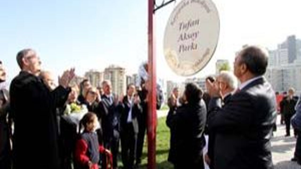 Konuşmalardan sonra parkın isim tabelası aile yakınları ve gazeteciler tarafından törenle açıldı. Parktaki çocuk oyuncaklarının ilk konuğu ise, Tufan Aksoy'un 6 yaşındaki torunu Duru Aksoy oldu. Minik Duru, dedesinin adını taşıyan parkta, babası Kerem Aksoy ile birlikte oyun oynadı.
