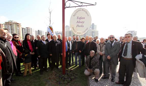 Durak, 'Bizler, sadece, Karşıyaka'nın bu duyarlılıklarının somutlaşmasında birer aracıyız. Onların, seslerinin, bu kentin dört bir yanında yankı bulmasını sağlamaya çalışıyoruz. Hayata geçirdiğimiz her bir projenin, parkın, meydanın, anıtın adını seçerken, bir sokağa isim verirken, Karşıyaka'ya yakışanı yapmaya çalışıyoruz. Bugün açacağımız bu park da, çok özel bir insanın adını taşıyor. Tufan Aksoy'u yakından tanıyanlar onun zarafetini, devrimci kişiliğini bilir. Kaleminin gücünü adaletten yana kullanmıştır. Karşıyakalılar seni hiç unutmayacak, ışıklı yolun tüm Türkiye'yi aydınlatsın' diye konuştu.