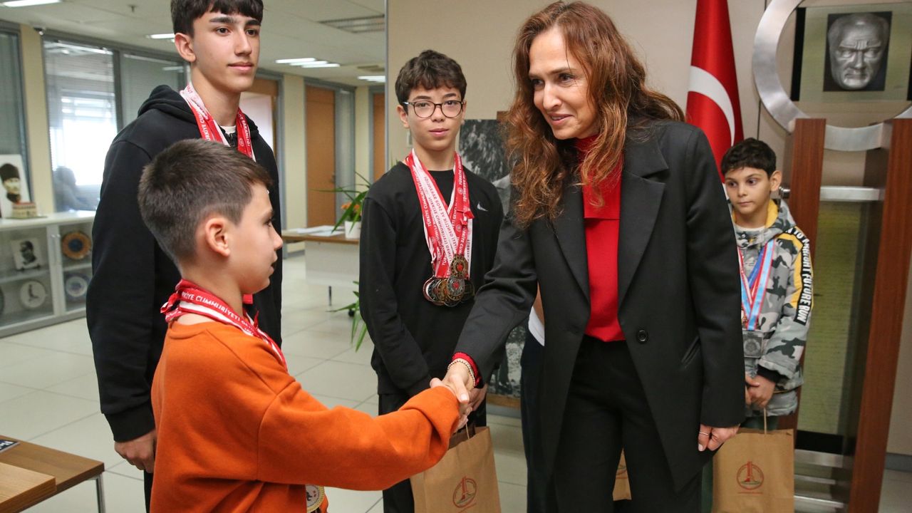 Karşıyaka Belediye Başkanı Yıldız Ünsal; 12 yaş grubunda tüm rakiplerini geride bırakarak altın madalyanın sahibi olan Uras Özer’i (34 kg), aynı yaş grubunda bronz madalya kazanan Asil Ceylan (30 kg) ile Kerem Uras Felek’i (38 kg) ve 14 yaş kategorisinde bronz madalyaya ulaşan Sedat Yenice’yi (42 kg), antrenörleri Abdülkadir Kurşun ile birlikte konuk ederek tebriklerini iletti. Ziyarete, Türkiye çapında derece yapan sporcular da katıldı.