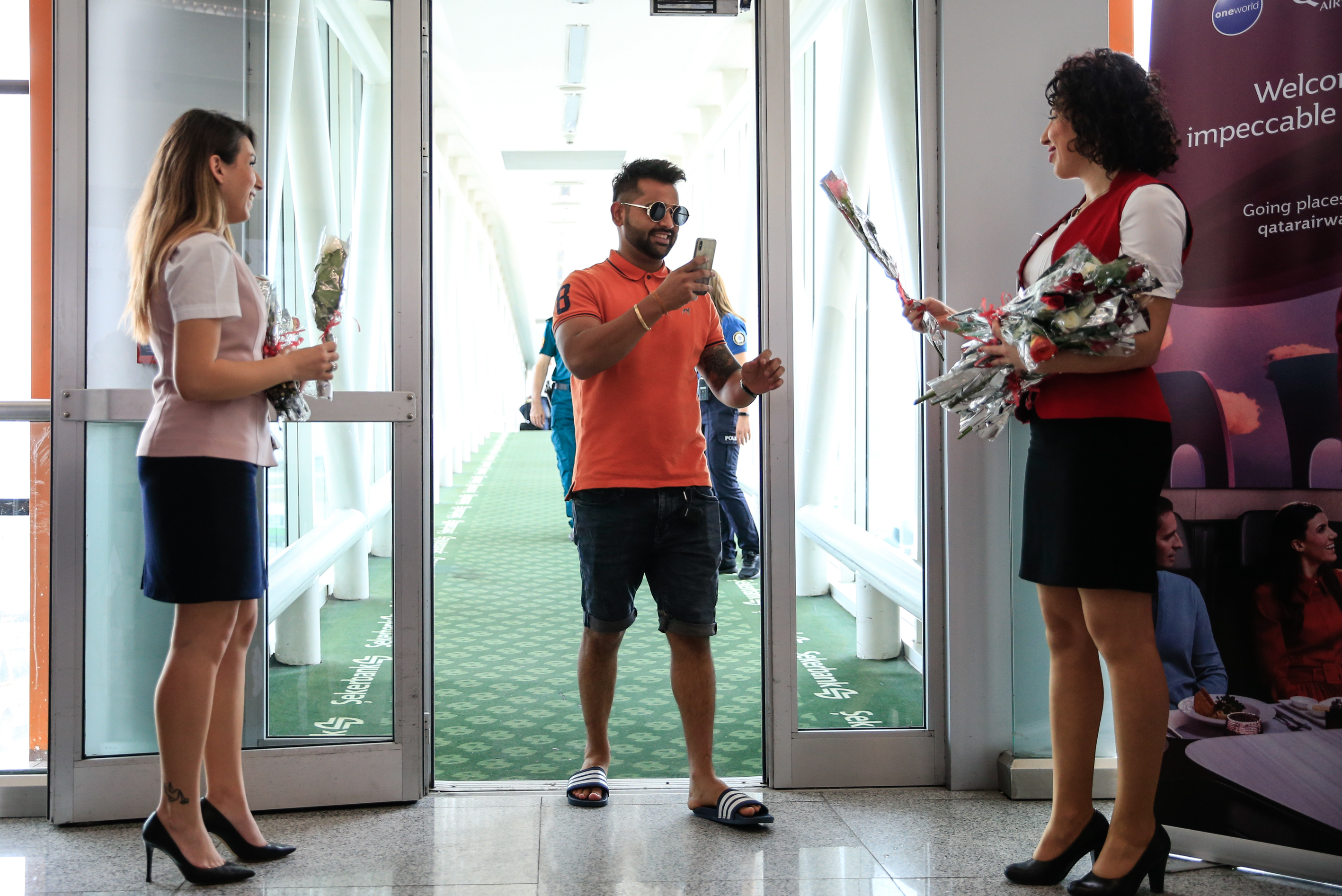 İlk sefer dolayısıyla düzenlenen törende, Katar'dan Adnan Menderes Havalimanı'na gelen 95 yolcu çiçeklerle karşılandı.