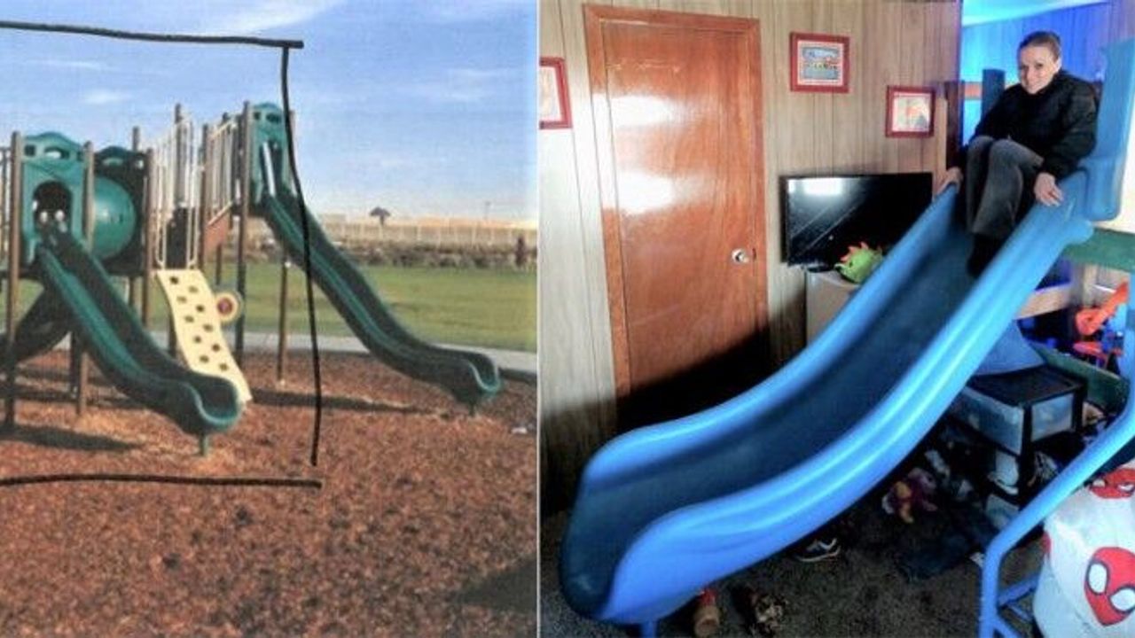 Önceden yeşil renge sahip olan ancak maviye boyanan kaydırağın, çocuk odasındaki ranzaya monte edildiği görüldü. New York Post'un haberine göre daha sonra eve gelen Pasco Park ve Eğlence Birimi'nden görevliler kaydırağı söktü.
