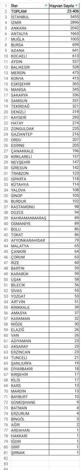 İstanbul'da 5 bin 455, İzmir'de 2 bin 896 ve Ankara'da 2042 yasaklı ırkın kayıt altına alındığı belirten dernek yetkilileri, 81 ilde toplam 23 bin 406 kayıt işlemi yapıldığı bilgisini verdi. Ardahan, Hakkari, Iğdır, Siirt ve Şırnak'ta sadece 1'er hayvanın kayıt altına alındığı listede, ilk sırayı İstanbul aldı. Sürenin dolması ve bu sırada kayıt işlemi yaptıramayan bazı hayvan sahiplerinin can dostlarını terk etmesi ise büyük üzüntü yaratmaya devam ediyor. Yurt genelinde terk edilmiş çok sayıda yasaklı ırk, belediye veteriner işleri ekipleri tarafından barınaklarda koruma altına alındı. Karşıyaka'da da genelge sonrası sokağa terk edilen 2 pitbull ve 1 arjntin dogo cinsi köpek, barınağa alındı.