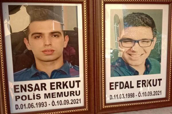 Ensar Erkut'un Denizli İl Emniyet Müdürlüğü'nde Yunus timinde görev yaptığı öğrenildi. Yaşamını yitiren iki kardeşin cenazeleri, dün akşam memleketleri İzmir'in Ödemiş ilçesine gönderildi. Ödemiş Devlet Hastanesi'nde bekletilen cenazeler, bu sabah yakınlarına teslim edildi. İki kardeşin cenazeleri, ilk olarak Süleyman Demirel Mahallesi 1019. Sokak'taki evlerinin önüne getirilip hellallik alındı. Kardeşler için Efe Toplu Konut Camisi'nde öğle vakti düzenlenen cenaze törenine Ödemiş İlçe Emniyet Müdürü Hasan Özge, Ödemiş Belediye Başkanı Mehmet Eriş, Denizli'den gelen meslektaşları, iki evladını birden kaybeden Tire eski Milli Eğitim Müdürü Mehmet Erkut, yaşamını yitiren polis memurunun eşi Irmak Erkut ve diğer yakınları katıldı. Sinir krizi geçiren anne Havva Erkut ise cenazeye getirilmedi. Polis memuru Ensar Erkut'un, polis mangasınca omuzlarda taşınan Türk bayrağına sarılı tabutu cami avlusuna getirildiğinde gözyaşları sel oldu.