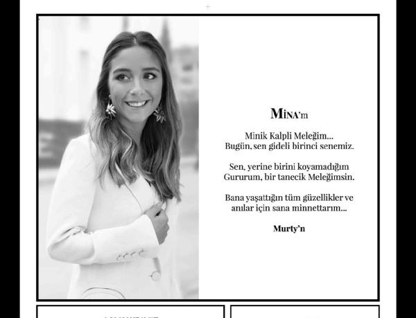 Mina Başaran'ın nişanlısı Murat Gezer'in gazetelere verdiği ilan duygulandırdı. İlanda Gezer, 'Mina'm... Minik Kalpli Meleğim...Bugün sen gideli birinci senemiz. Sen yerine birini koyamadığım gururum, bir tanecik meleğimsin. Bana yaşattığın tüm güzellikler ve anılar için sana minnettarım...Murty'n' yazdı. (DHA)