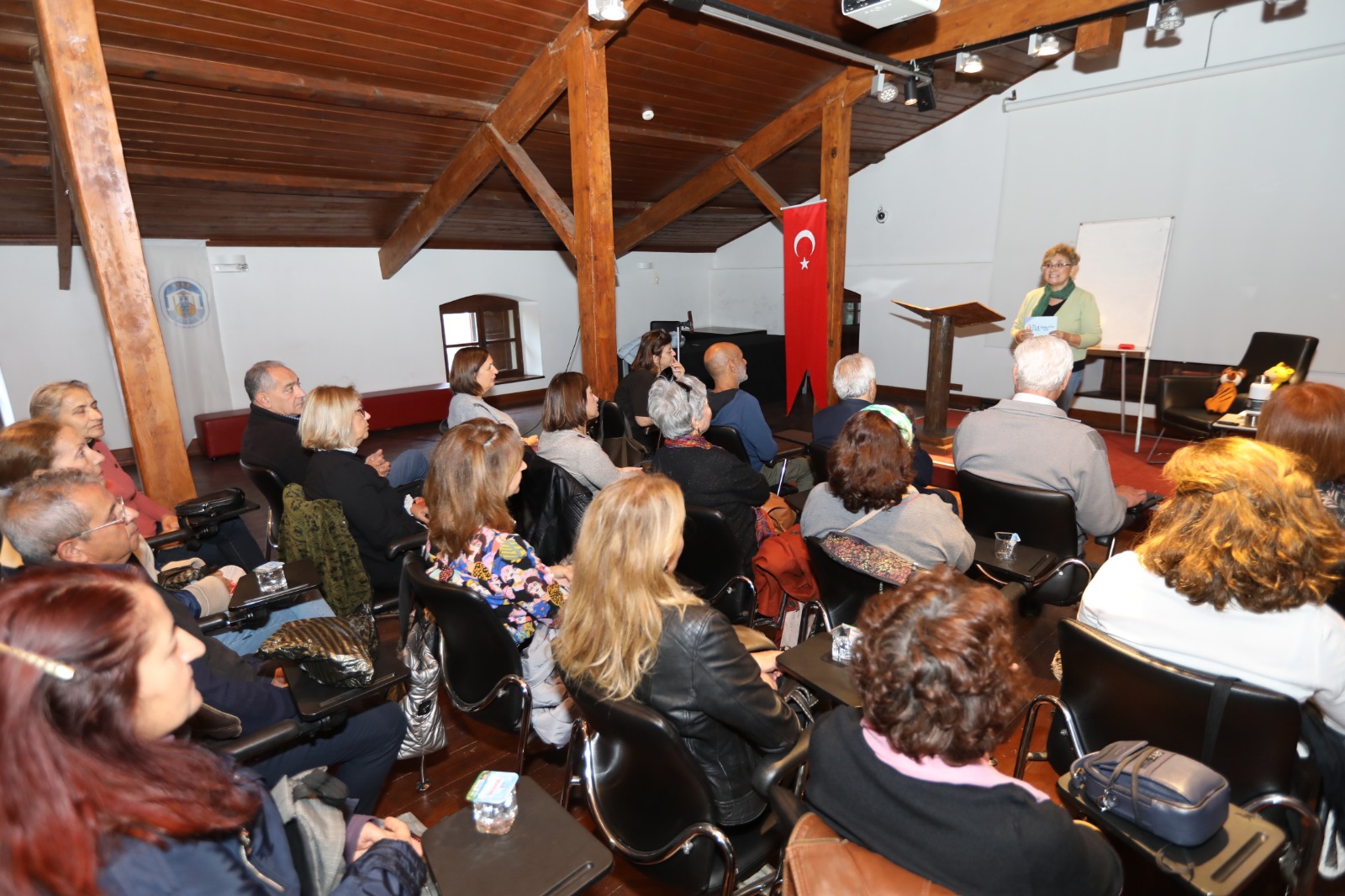 Etkinliğin sunuculuğunu yapan Yeşim Kopan açılış konuşmasında; 'Efes Selçuk Kadın Platformu olarak bu etkinlikleri düzenlerken şiddeti değil şiddetsizliği, umudu, olumlu şeyleri çağrıştırmak, olumlu konuşmak istedik. Gözleri, bakışları şiddetsiz bir yöne çevirmek istedik. Bu sene Efes Selçuk Kadın Platformu'nun 25 Kasım Kadına Yönelik Şiddete Karşı Uluslararası Mücadele Günü sebebiyle hazırladığı bütün etkinliklere SEGEM-DER önderlik etti. Bu sene söylediğimiz söz şuydu: 'Hayat verirsin, huzur verirsin, umut verirsin bir güzel söz söylemekle. Birilerinin huzuru, umudu, mutluluğu olmak gerek. Yoksa hayat neye yarar ki' dedik. Bütün etkinliklerimizi bu sözün ışığında gerçekleştirmek istedik. Bu kapsamda Erol Benjamin Scott'dan şiddetsiz iletişimi dinleyeceğiz' dedi.