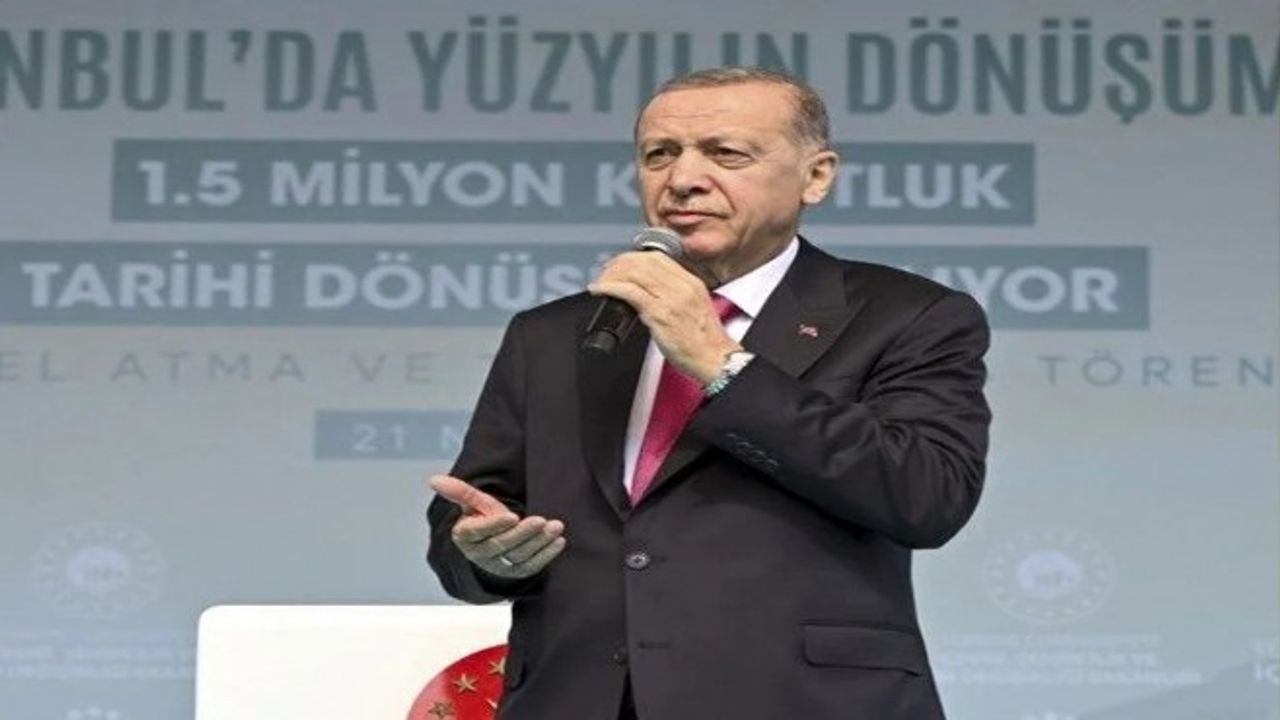 'Ülke genelinde yeni bir seferberlik başlatıyoruz. İstanbul ilk sırada yer alıyor. 39 ilçede 220 bin binadaki 1,5 milyon bağımsız bölüm risk altındadır. 6 Şubat depremlerinin verdiği mesajı dikkate alarak çok daha büyük dönüşüm projesi başlatıyoruz. 3 ayrı projeyi hızla hayata geçirmek. Avrupa yakasında 500 bin konut yapmak. İkincisi Asya'daki rezerv alanda 500 bin konut. Üçüncüsü mevcut yerleşim yerlerinde 500 bin konutu yerinde dönüştürmek. En az 6 milyon İstanbulluyu güvenli yuvalara kavuşturmak olacağız.