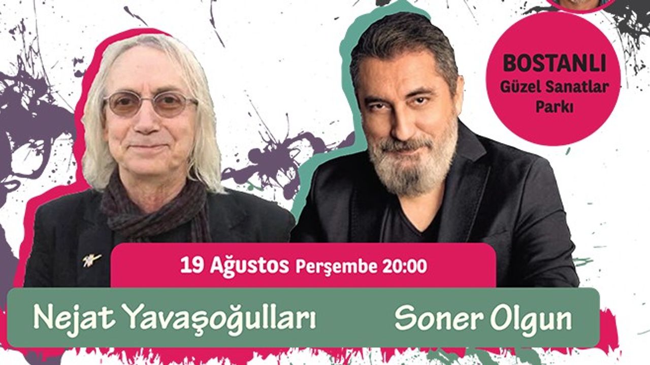 Bulutsuzluk Özlemi'nin solisti, 'Sözlerimi Geri Alamam' şarkısıyla gönüllere taht kuran Nejat Yavaşoğulları, canlı performansı ve sahne hakimiyeti ile Türkiye'nin en başarılı sanatçılarından biri olarak anılan Soner Olgun ile yönetmen Semih Çelenk 19 Ağustos Perşembe günü saat 20.00'de Bostanlı Güzel Sanatlar Parkı'nda Karşıyakalılar ile buluşacak. Söyleşide; yaşamdan sanata, müzikten hayata, dünden bugüne birçok konu konuşulacak.