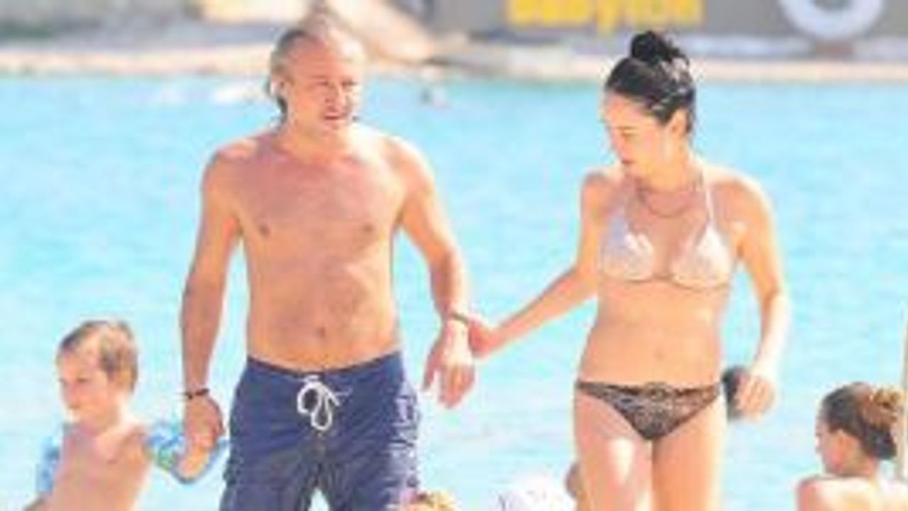 Aile, denizden çıktıktan sonra el ele tutuşarak iskeleden şezlonglarına doğru geçerken, mutlu bir görünüm sergiledi. Barış Falay ve ailesi, bir süre daha Çeşme'de tatile devam edecek. (DHA)