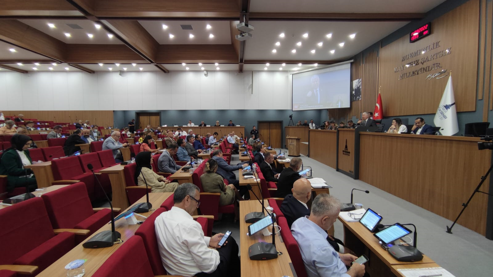 Oktay GÜÇTEKİN / EGEDESONSÖZ - İzmir Büyükşehir Belediyesi Eylül ayı olağan Meclisi'nin ikinci oturumu gerçekleştirildi. Belediye Meclis Toplantı Salonu'nda düzenlenen oturuma İzmir Büyükşehir Belediye Başkanı Tunç Soyer'in yokluğunda Başkan Vekili Mustafa Özuslu başkanlık yaptı