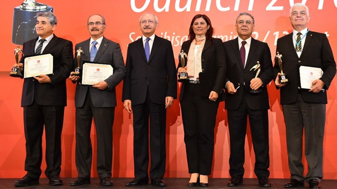 Sosyal Demokrat Belediyeler Derneği (SODEM)'nin Euphoria Aegean Otel'de düzenlediği 'Yerel Yönetimler Projeleri' ödül törenine CHP Lideri Kılıçdaroğlu'nun yanı sıra CHP Genel Sekreter ve İzmir Milletvekili Kamil Okyay Sındır, Genel Başkan Yardımcısı Seyit Torun İzmir Büyükşehir Belediye Başkanı Aziz Kocaoğlu, CHP İzmir İl Başkanı Alaattin Yüksel, CHP'li milletvekilleri ve il yöneticileri katıldı.