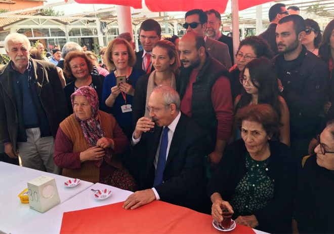 CHP Genel Başkanı Kemal Kılıçdaroğlu ödül töreni sonrası otelde dinlenmeye çekildi. Kılıçdaroğlu daha sonra CHP İl Başkanı Alaattin Yüksel, İzmir Büyükşehir Belediye Başkanı Aziz Kocaoğlu ve Seferihisar Belediye Başkanı Tunç Soyer eşliğinde Seferihisar'da şehir turuna çıktı. İlk olarak balık haline giderek, esnafı ziyaret etti. Esnaf ise Kılıçdaroğlu'na mezat için geç kalındığını ifade etti. Kılıçdaroğlu daha sonra Sığacık'ta vatandaşlarla bir araya geldi. Vatandaşların sorunlarını ve şikayetlerini dinleyen Kılıçdaroğlu, vatandaşlara çözüm önerilerini anlatarak, vatandaşlar ve esnafla sohbet etti. Kılıçdaroğlu, Anayasa tartışmalarına değinerek, 'Elbette güzel anayasamız olsun. Toplumun tümü eline aldığı zaman bu benim anayasam diye bilsin. Böyle bir düşünce her zaman vardır. Ama bir ülkenin belli bir tarihsel birikimi ve tarihsel koşulları vardır. Bu tarihsel birikim koşulları da dikkate almamız gerekiyor. O manada biz Anayasa'nın ilk dört maddesi hakkında görüşlerimizi söyledik. Güçlü parlamenter sisteme ihtiyacımız var: Bunun nasıl olması gerektiğinin de altını çizdik. 16 madde halinde kamuoyuyla paylaştık. Arzu ederiz ki benzer düşünceleri dile getiren, iktidar partisi de, Sayın Davutoğlu'da CHP'nin açık ve net olduğu kadar benzer düşüncelerle açık ve net olarak kamuoyunun önüne çıksınlar. Onlarda düşüncelerini ifade etsinler. Böylece daha iyi bir zeminde oturup tartışacağız. Bugün sınavlar var. Bütün öğrencilere başarılar diliyoruz Sonuç ne olursa olsun. Sonunda bir sınavdır. Her ne olursa olsun, çocuklarımızı seviyoruz' ifadelerini kulandı.