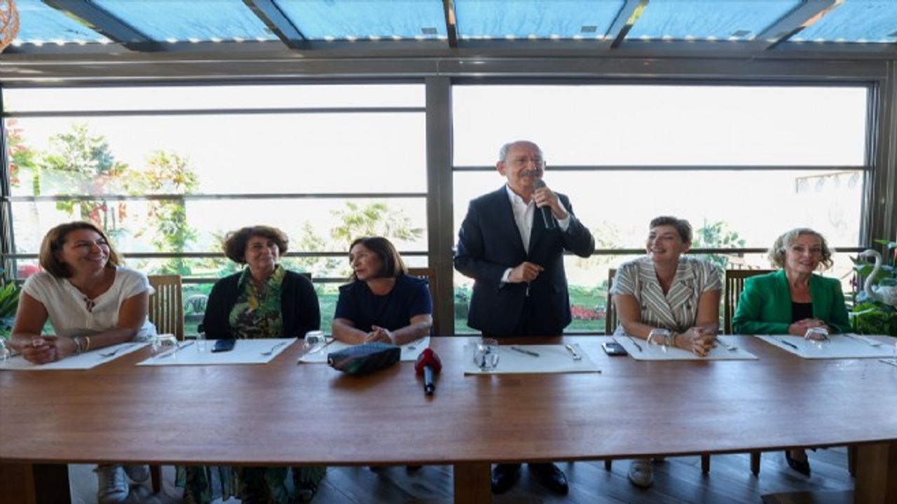 Kılıçdaroğlu, eşi Selvi Kılıçdaroğlu'nun davetiyle, çay sohbetine katılarak bir konuşma yaptı. (AA)
