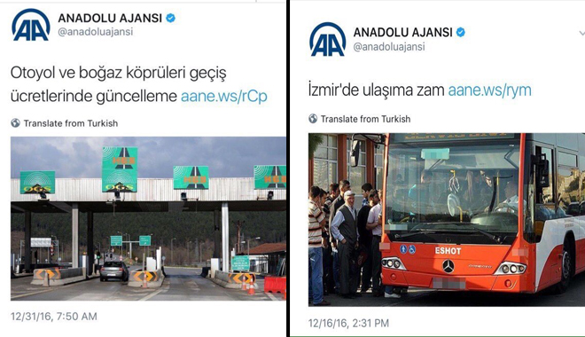 Anadolu Ajansı şöyle diyor köprü ücretleri güncellendi. Zam yapıldı demiyor. İzmir Büyükşehir Belediyesi otobüs ücretlerine zam yapmış. AA nasıl veriyor: İzmir Büyükşehir Belediyesi otobüs ücretlerine zam yaptı. Bunun adı Anadolu Ajansı. Dedim ya devlette liyakati çökertirsen bu tür saçmalıklar olur. AA Genel Müdürü'ne soruyorum sen devletin ajansının genel müdürü müsün iktidarın kölesi misin? Senin paranı ben veriyorum. Oturup adam gibi haber yapacaksın.' (Hürriyet)