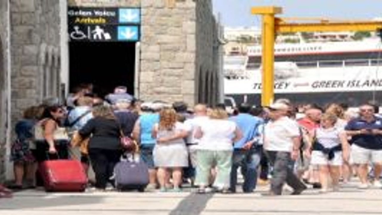 Bodrum'a gelen Yunanlı turistler daha sonra servis araçları kalacakları otele gitti. (DHA)