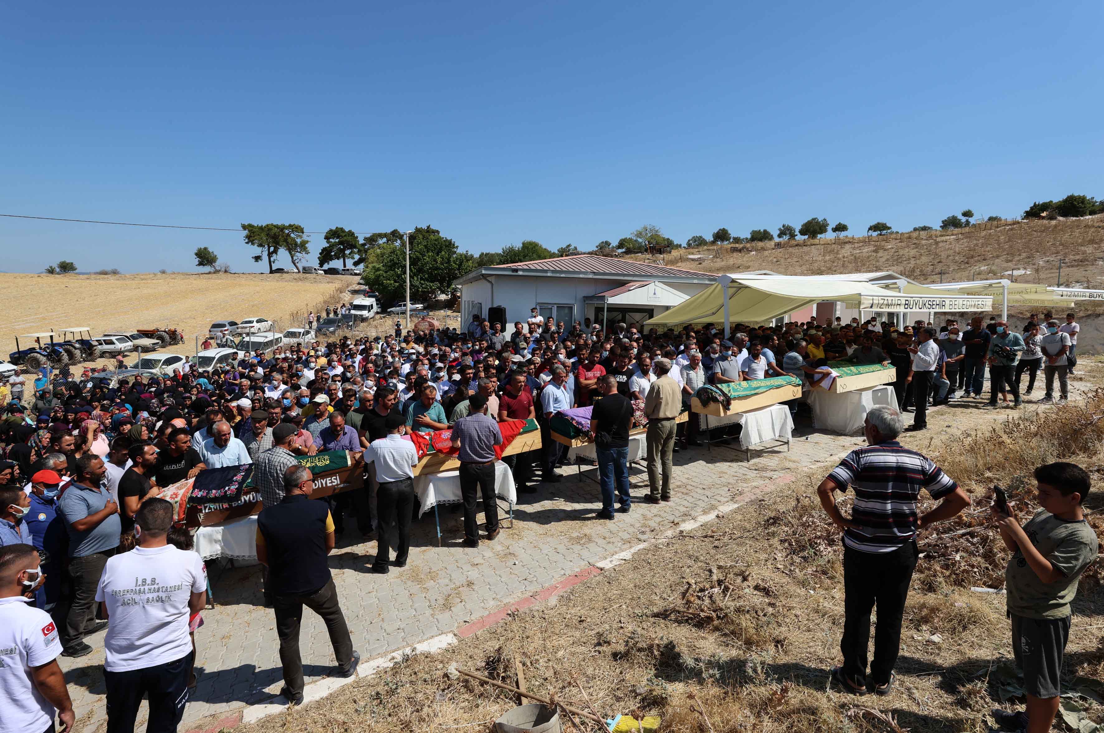 Cenazeye, ölen kişilerin yakınları ile AK Parti Genel Başkan Yardımcısı Hamza Dağ, AK Parti İzmir İl Başkanı Kerem Ali Sürekli, Kınık Belediye Başkanı Sadık Doğruer, Bergama Belediye Başkanı Hakan Koştu, CHP İzmir Milletvekili Mahir Polat, CHP İzmir İl Başkanı Deniz Yücel ve vatandaşlar katıldı.