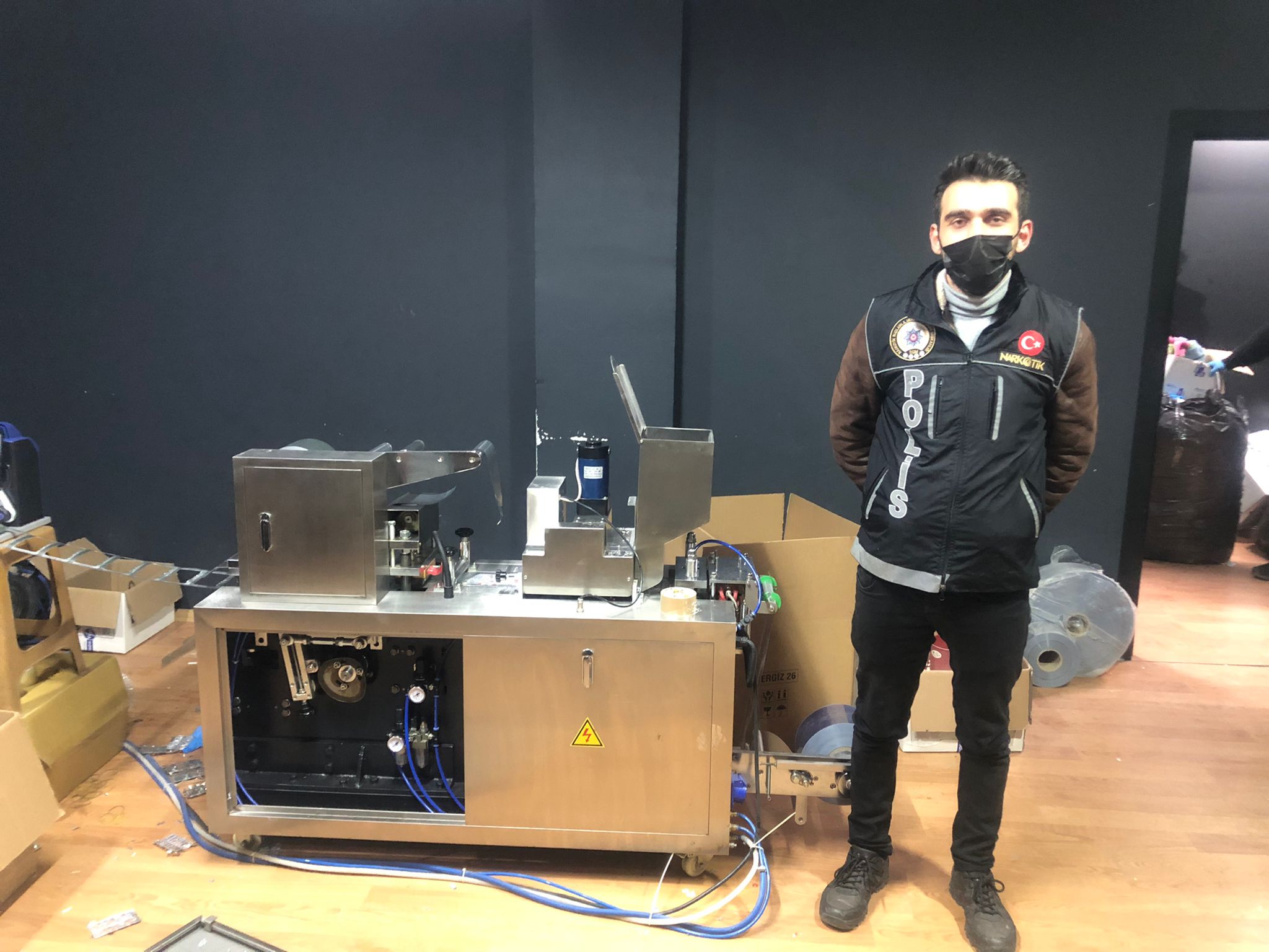 Şüphelilerin yurt dışından getirttikleri yaklaşık 500 kilogram ağırlığındaki makineleri, 4 katlı binanın 4. katına vinç yardımıyla çıkararak imalathane kurdukları tespit edildi. Burada da yeşil ya da kırmızı reçeteye tabi 168 bin 486 hap bulundu.