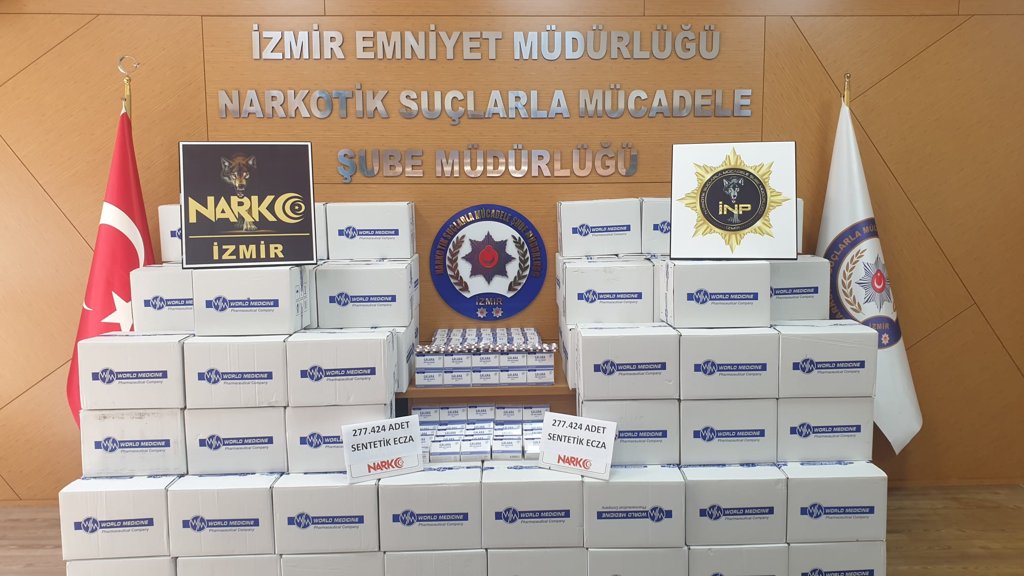 İzmir polisi, 18 Şubat'ta Karşıyaka ilçesinde bir otomobili durdurdu. Otomobilde yapılan aramada uyuşturucu niteliği olan 277 bin 424 hap bulundu, sürücü M.G. (38) gözaltına alındı.