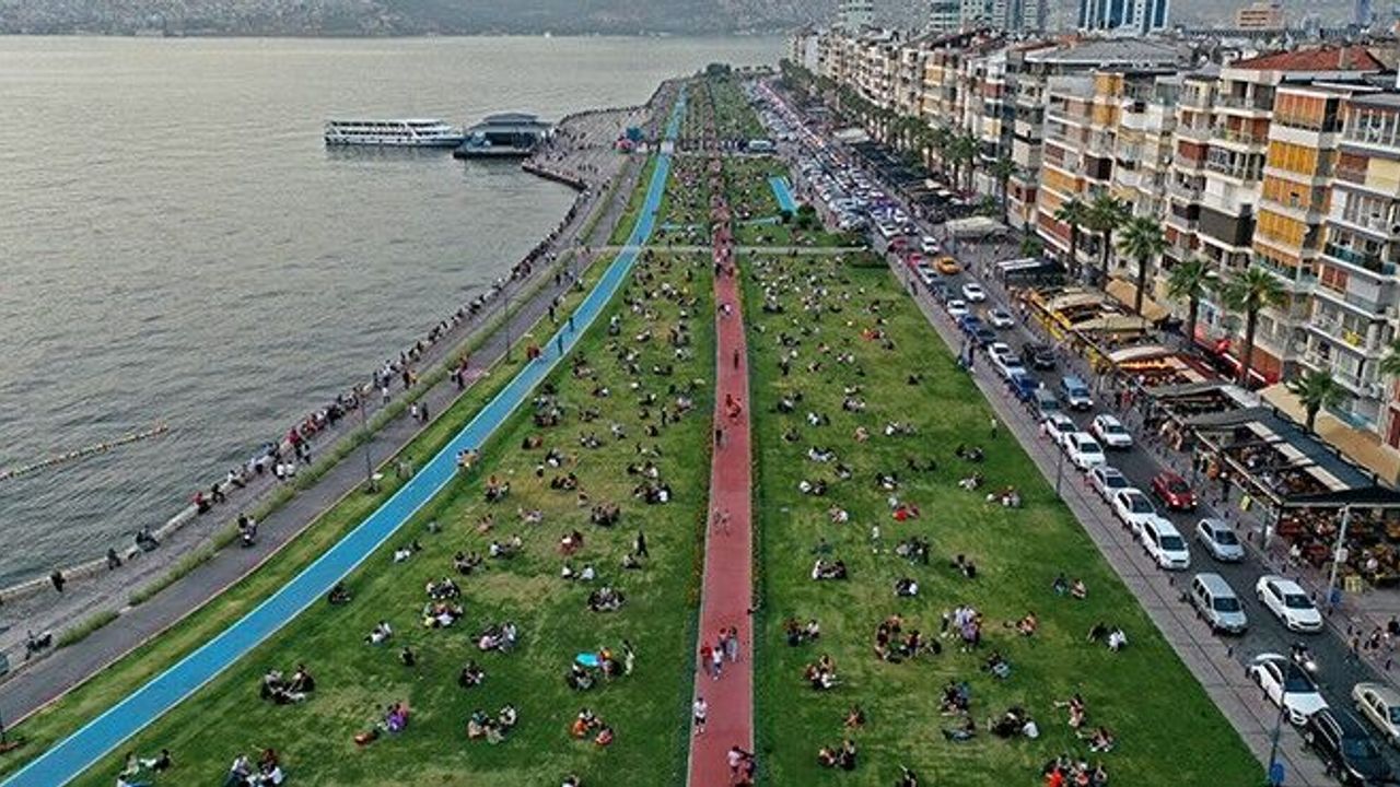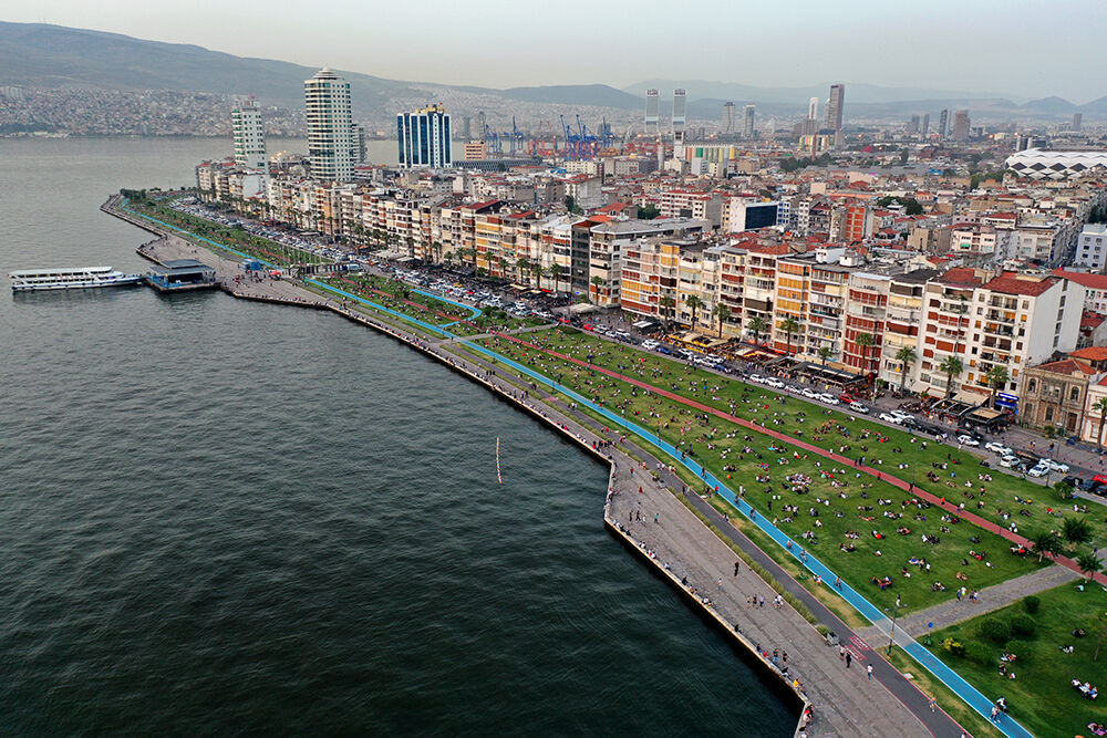İçişleri Bakanlığının 27 Haziran'da yayımladığı genelgeyle kademeli normalleşme sürecinin üçüncü etabının başlamasıyla İzmirliler, yeni tip koronavirüs (Kovid-19) salgını tedbirleri altında Kordonboyu'nda yoğunluk oluşturdu.