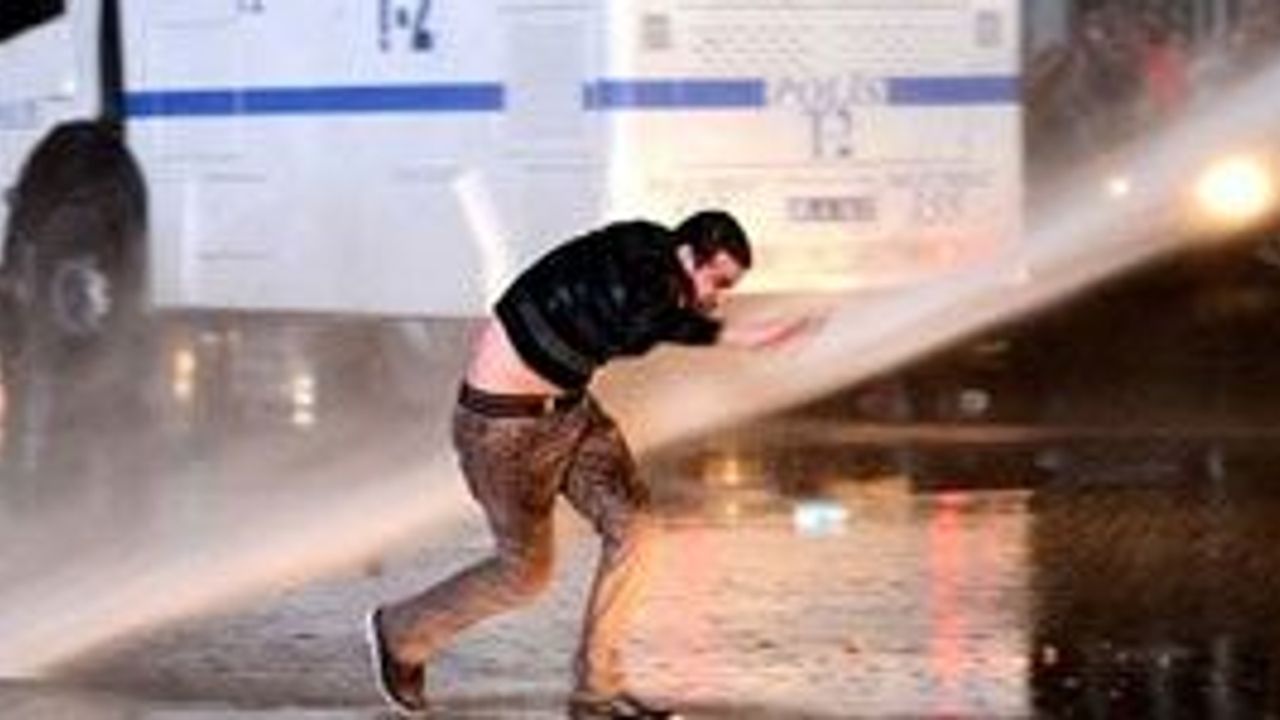 Aynı zamanda TOMA'ların üzerine çıkan ve Türk bayrağı asan göstericiler olduğu görülürken, bir TOMA'nın etrafı tamamen eylemciler tarafından sarıldı. Bir süre beklemede kalan polis, saat 01.20 sıralarında gruba müdahale etti. Biber gazı ve tazyikli suyla yapılan müdahale sonrası grup Atatürk Bulvarı'na geri çekildi. Bir süre daha devam eden olaylar, gece saatlerinde sona erdi.