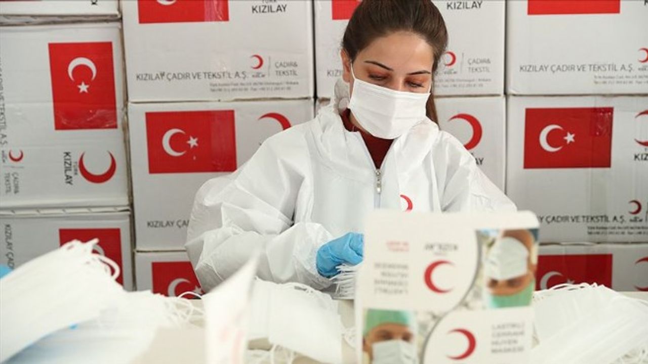 'Kızılay, Etimesgut'taki üretim biriminin yanı sıra çeşitli illerde bulunan Toplum Merkezlerinde de gönüllüleri aracılığıyla maske üreterek pandemiyle mücadeleye destek veriyor. Bazı Kızılay şubeleri de kendi bulundukları il veya ilçelerde yine gönüllüleri vasıtasıyla maske üretimi gerçekleştiriyor.' (AA)