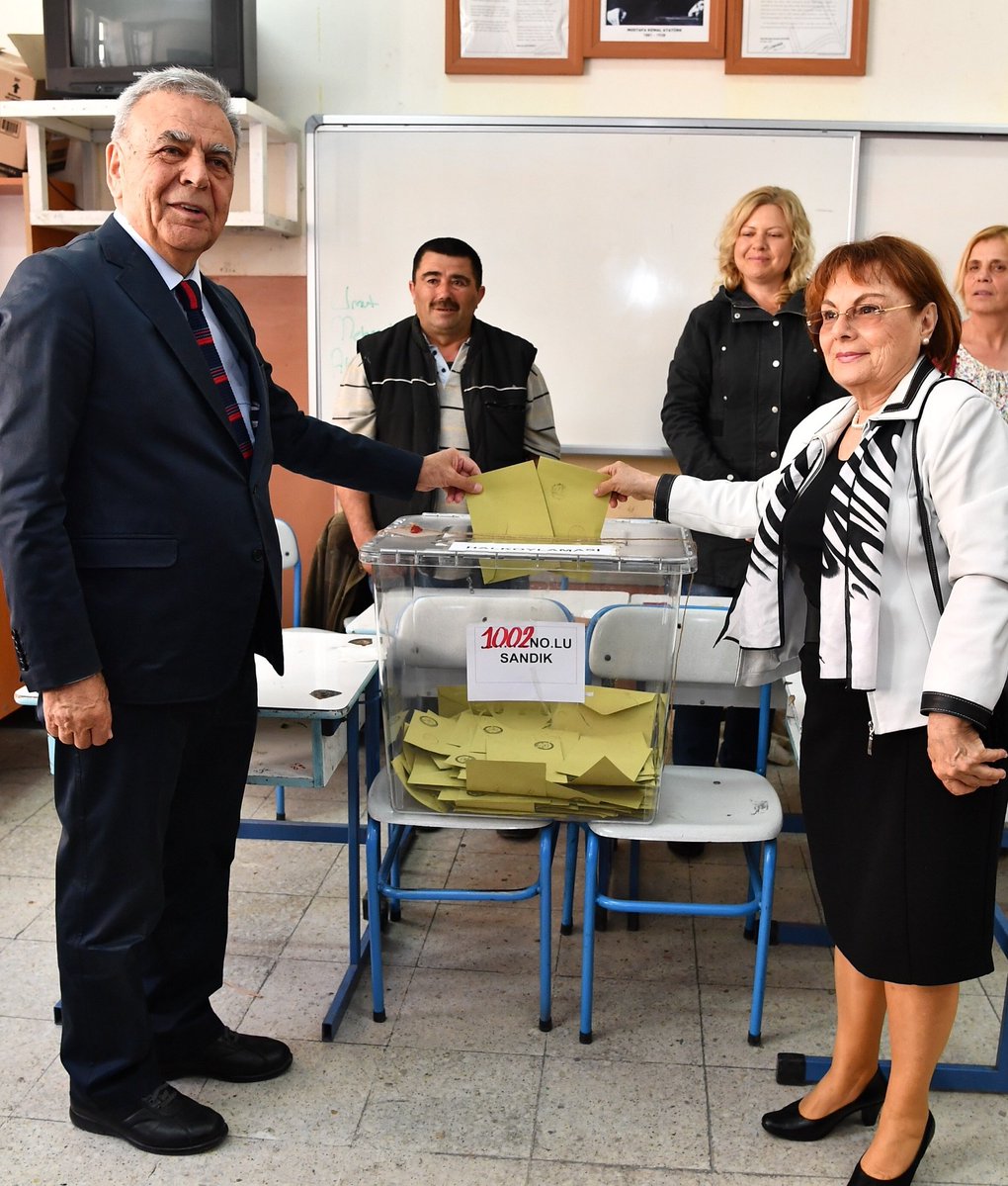 Okula eşi Dr. Türkegül Kocaoğlu ile birlikte gelen Başkan Kocaoğlu; seçimlerin Türkiye'ye ve İzmir'e hayırlı olmasını diledi, bahçede vatandaşlarla sohbet etti. 1002 nolu sandıkta oy kullanan Büyükşehir Belediye Başkanı Aziz Kocaoğlu, sonrasında gazetecilerin sorularını yanıtladı.