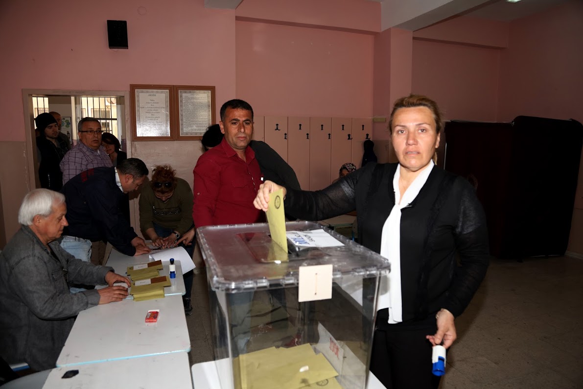 Buca Belediye Başkanı Levent Piriştina Anayasa değişikliği için yapılan referandum için oyunu Buca Adatepe Mahallesi'ndeki, Buca Mesleki ve Teknik Anadolu Lisesi'nde kullandı.
