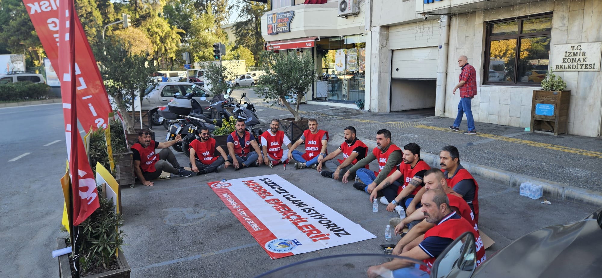 Genel-İş İzmir 5 No’lu Şube yöneticileri ve işyeri temsilcilerinin de destek verdiği eylemde, belediye yönetimine çağrı yapılarak işçilerin mağduriyetinin giderilmesi istendi.