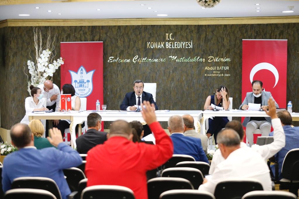 Konak Belediye Başkanı Abdül Batur başkanlığında toplanan mecliste önergeler, ilgili komisyonlara gönderildi. Başkan Batur, İkiçeşmelik'teki binanın restorasyonuyla ilgili olarak, 'Şimdi yıkım yapılıyor. Sonrasında restorasyon projesine geçilecek' açıklamasında bulundu. 1. Kadriye Mahallesi'ndeki sosyal tesisle ilgili çalışmaların devam ettiğini belirten Batur, Karataş'ta, Dario Moreno Sokağı'nın başındaki tarihi binada 7/24 hizmet verecek kütüphane projesinin hayata geçirileceğini, bu ay içinde kütüphanenin hizmete gireceğini duyurdu. Kalp krizi geçiren Seferihisar Belediye Başkanı İsmail Yetişkin'e geçmiş olsun dileklerini ileten Başkan Batur, Hazine ve Maliye Bakanı Berat Albayrak'ın eşi Esra Albayrak'a yönelik yapılan saldırıyı şiddetle kınadığını açıkladı. Batur, 'Aynı saldırı, Selahattin Demirtaş'ın eşi Başak Hanım'a da yapılmıştı. Kadın ve çocuklara yapılan bu saldırı, gerçekten çok çirkin. Bu saldırıyı, şiddetle ve nefretle kınıyorum' ifadelerini kullandı. AK Parti ve MHP'li üyeler de Esra Albayrak'a yapılan saldırıyla ilgili kınama mesajları verdi.