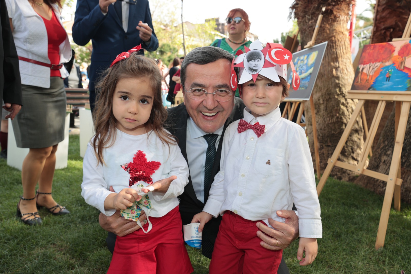 Ödül töreninin ardından hep birlikte, Konak Belediyesi'nin Kültürpark'ta düzenlediği 23 Nisan Ulusal Egemenlik ve Çocuk Bayramı Şenliği'ne geçildi. Konak Belediyesi'nin semt merkezleri, Konak Engelsiz Yaşam Köyü ve Minikler Konağı'na devam eden çocukların da yer aldığı şenlik alanında çocuklar gönüllerince eğlenme fırsatı buldu. Buradaki etkinliklere ev sahibi Konak Belediye Başkanı Abdül Batur'un yanı sıra Konak Kaymakamı Gökhan Görgülüarslan, Bulgaristan Pavel Belediye Başkanı İsa Besoğlu, CHP Konak İlçe Başkanı Akın Küçükoğullarından, Konak Belediyesi Meclis Üyeleri, Bulgaristan ve Ukrayna heyetleri katıldı. Çocukların rengarenk görüntüler oluşturduğu etkinlikte Ukrayna Çocuk Halk Oyunları Grubu ve Bulgaristan Detelini Halk Dansları Ekibinin gösterileri büyük alkış aldı. Dans gösterilerinin ardından Konak Belediyesi'nin Aziziye, Zeytinlik, Ballıkuyu ve Gültepe Semt Merkezlerinde kurslara katılan çocuklar sahne aldı. Yetenekleriyle göz dolduran çocukların ardından Sekizde Tiyatro Grubunun Çekirdek Prens adlı oyunu sahnelendi. Etkinliklerin açışında konuşan Başkan Batur, 'Ulu Önder Mustafa Kemal Atatürk dünyada bir ilk olarak bir milli bayramı çocuklara adamış. Bu Bayram 23 Nisan Ulusal Egemenlik ve Çocuk Bayramı. Özellikle çocuklara çok düşkün olan ve geleceği çocuklarda gören bir lider olan Mustafa Kemal Atatürk, ulusal egemenliğimizin temellerinin atıldığı, parlamenter sisteme geçilen o günde bu güzel bayramı sizlere armağan etmiş. Dünyada bir ilk, bunu başka bir liderde, başka bir ülkede görmeniz mümkün değil. 23 Nisan Ulusal Egemenlik ve Çocuk Bayramı'nı bizlere, sizlere emanet eden Ulu Önder Mustafa Kemal Atatürk'ü bir kez daha saygıyla, minnetle, şükranla anıyorum ve hepinizi sevgiyle selamlıyorum. Yaşasın Cumhuriyet, Yaşasın Mustafa Kemal Atatürk' dedi.