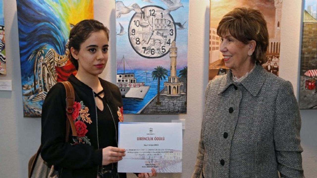 Bu yıl 'İzmir'de Zaman: Dün, Bugün, Yarın İzmir' başlığı altında düzenlenen yarışmaya farklı liselerden genç ressamlar katıldı. Yarışmaya katılan resimlerin yer aldığı sergi gezenlerden de tam not aldı. Dokuz Eylül Üniversitesi (DEÜ) Buca Eğitim fakültesi Resim iş Eğitimi Anabilim Dalı Başkanı Doç. Dr. Tuba Gültekin, Öğretim Üyesi Yrd. Doç. Dr. Turan Enginoğlu, Öğretim Görevlisi Emel Yalçıntaş, DEÜ Güzel Sanatlar Fakültesi Öğretim Görevlisi Hamdi Gökova ve Öğretim görevlisi Serpil Birsin'den oluşan seçici kurul tarafından değerlendirilen eserlerden dereceye girenlere çeşitli ödüller verildi. Normal Lise ve Güzel Sanatlar Lisesi olmak üzere iki kategoride verilen ödül töreninde; Gaziemir Nevvar Salih İşgören Anadolu Lisesi'nden Derya Göker birinci, Hatay Özel Fen Bilimleri Lisesi'nden Deniz Eryılmaz ikinci, Mithatpaşa Mesleki ve Teknik Anadolu Lisesi'nden Deniz Özüyanık da üçüncü oldu. Güzel Sanatlar Lisesi kategorisinde ise, Remziye Öğretmen birinci olurken, Yunus Kağnıcı ikinci, Erkan Işık üçüncü oldu. Dereceye giren tüm gençlere tam, yarım ve çeyrek altın verildi. Sergi 6 Nisan tarihine kadar gezilebilecek.