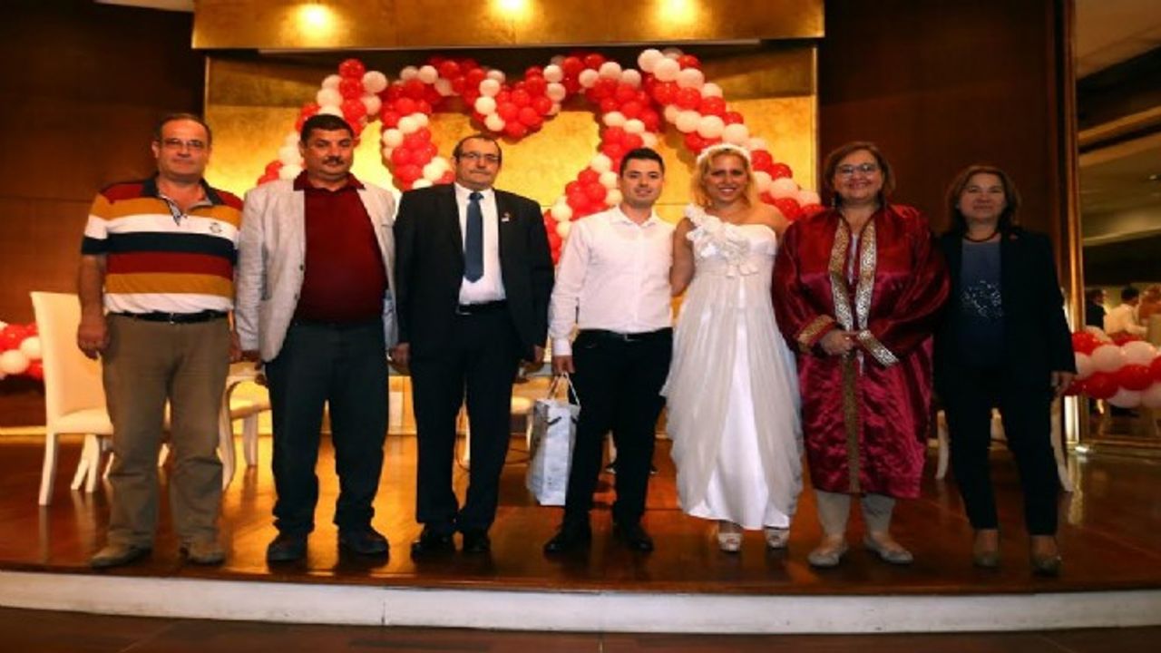 Toplu nikah törenine Konak Belediye Başkanı Sema Pekdaş'ın yanı sıra belediye meclis üyeleri, mahalle muhtarları, nikah kıyan çiftlerin yakınları ve Konak Belediyesi çalışanlarından oluşan kalabalık bir davetli gurubu katıldı. Mutlulukları gözlerinden okunan çiftlerin nikahlarını Başkan Sema Pekdaş kıyarken, nikah şahitliklerini de belediye meclis üyeleri ve muhtarlar yaptı. Birlikteliklerini resmileştiren çiftlerin yanı sıra yeni evlenen çiftler de kıyılan nikahın ardından evlilik cüzdanlarını Başkan Pekdaş'ın elinden aldı.