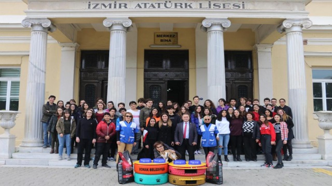 Atatürk Lisesi'nin Çevre ve Hayvanları Koruma Kulübü üyesi öğrenciler ve öğretmenleri okul bahçesinde yaşayan kediler için Konak Belediyesi Park ve Bahçeler Müdürlüğü ekipleri tarafından hazırlanan kedi evleri ile minik kedilerin yardımına koştular. Belediye ekiplerince okulun bahçesine yerleştirilen kedi evleri minik can dostlara yuva oldu.