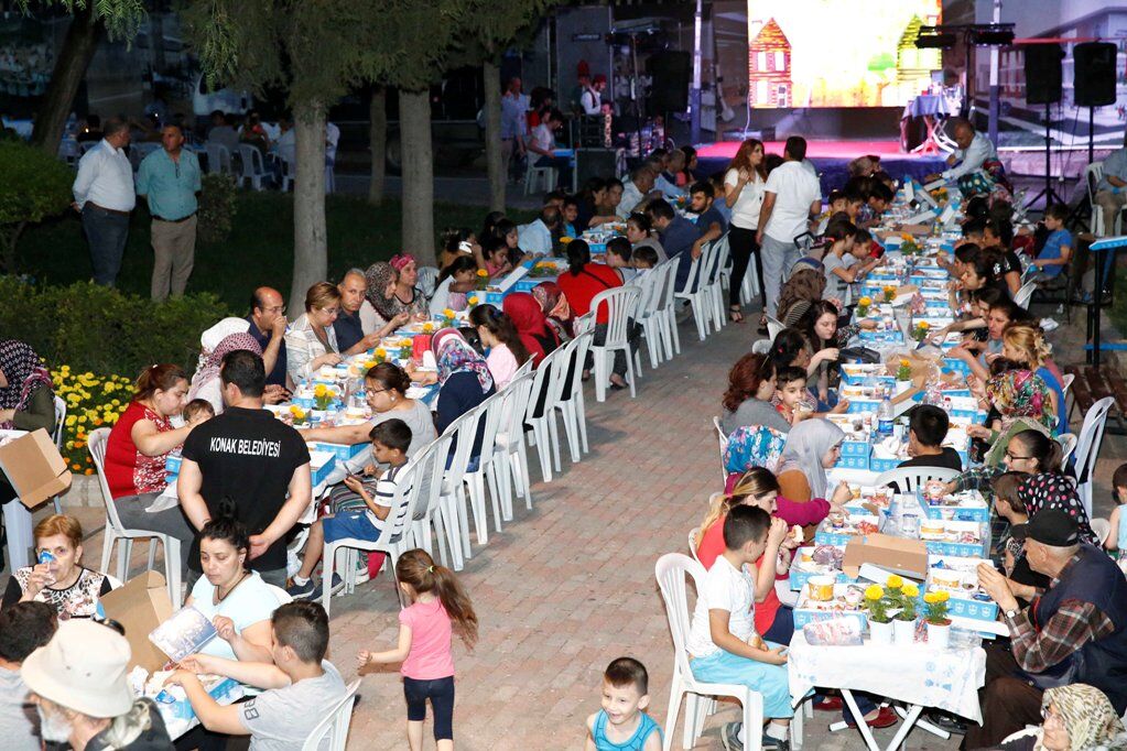İftar yemeğinde dünya barışı için herkesi duaya davet eden Pekdaş, Türkiye için de dileğinin aydınlık, huzurlu, mutlu bir ülke olmak olduğunu söyledi. Pekdaş, 'Çocuklarımız huzur içinde meslek sahibi olsunlar, onurlu yurttaşlar olarak yaşasın istiyoruz. Gençlerimiz başarılı olsun, ülkelerine faydalı birer genç olarak yetişsin. Bu ramazan dualarımızın gerçekleştiği bir ramazan olsun' dedi. Konuşmaların ardından Şenel Aksu Parkı'nda kurulan Ramazan Sofrası, sahnelenen Ramazan gösterileriyle şenlendi. Hacivat-Karagöz, sihirbazlık ve Ortaoyunu gösterileriyle renklenen davette çocuklara pamuk şeker ve şerbet ikramı da yapıldı. Konak Belediyesi, Ramazan ayı boyunca ilçenin farklı noktalarında kuracağı iftar sofralarıyla Konaklıları aynı sofrada buluşturmaya devam edecek.