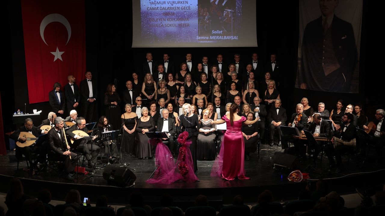 Konak Belediyesi’nin Sevgililer Günü etkinlikleri kapsamında düzenlediği Türk Sanat Müziği konseri sevgiyi notalarla dile getirdi. Güzelyalı Nazım Hikmet Kültür Merkezi’nde gerçekleştirilen konserde Konak Belediyesi Türk Sanat Müziği Korosu, Şef Deniz Aygün Araal yönetiminde sahne aldı. Türk Sanat Müziğinin klasik eserlerinin solo performanslar ve koroyla seslendirildiği geceye yoğun ilgi olurken dinleyiciler her şarkıya eşlik etti. “Hiçbir Şeyde Gözüm Yok, “Aşkımız Ne Güzeldi Gittiğinde Anladım”, “Eski Dostlar”, “Seni Çılgın Gibi Sevdim” gibi sevgiyi dile getiren şarkıların peş peşe sıralandığı konser bir de sürprize sahne oldu. Koro üyeleri, doğum günü olan şefleri Deniz Aygün Araal’a pasta sürprizi yaptı. Araal mumları kızıyla birlikte üfledikten sonra “Bugün bu salon doldu, taştı, çok teşekkür ediyorum. Güzelyalı Kültür Merkezimizde, kendi evimizde Sevgililer Günü konseri vermekten çok mutluyuz. Bize bu fırsatı sunduğu için Konak Belediye Başkanımız Sayın Nilüfer Çınarlı Mutlu’ya çok teşekkür ediyoruz. Çok değerli bir koromuz, çok değerli saz sanatçılarımız var. Biz hep birlikte kocaman bir aileyiz” diye konuştu.