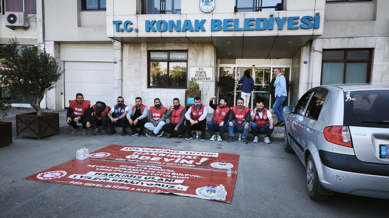 EGEDESONSÖZ- Konak Belediyesi çalışanları, uzun süredir ödenmediğini belirttikleri alacakları için belediye hizmet binası önünde başlattıkları eyleme devam ediyor.