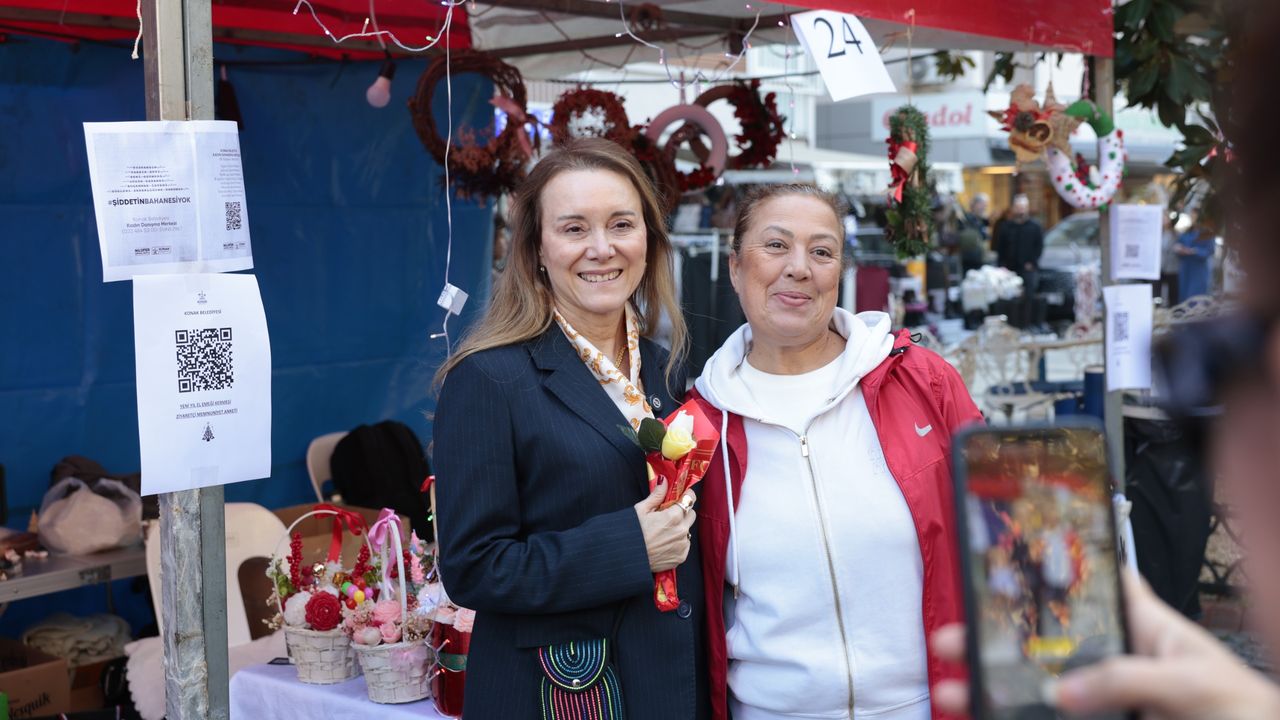Kermesin ilk gününde stantları ziyaret eden Konak Belediye Başkanı Nilüfer Çınarlı Mutlu, üretici kadınlara tek tek uğrayarak bereketli bir satış dileğinde bulundu. Kermesten alış veriş yapan vatandaşla da sohbet eden Başkan Mutlu, “Geçtiğimiz yıl olduğu gibi bu yıl da kermesimizin odağında kadın emeğinin görünür olması var. Sevdiklerine yeni yılda hediye almak isteyen herkesi kermesimize bekliyoruz ki emek hem görünür olsun ve değer kazansın hem de yeni yıla dayanışmanın gücüyle girelim” ifadelerini kullandı.