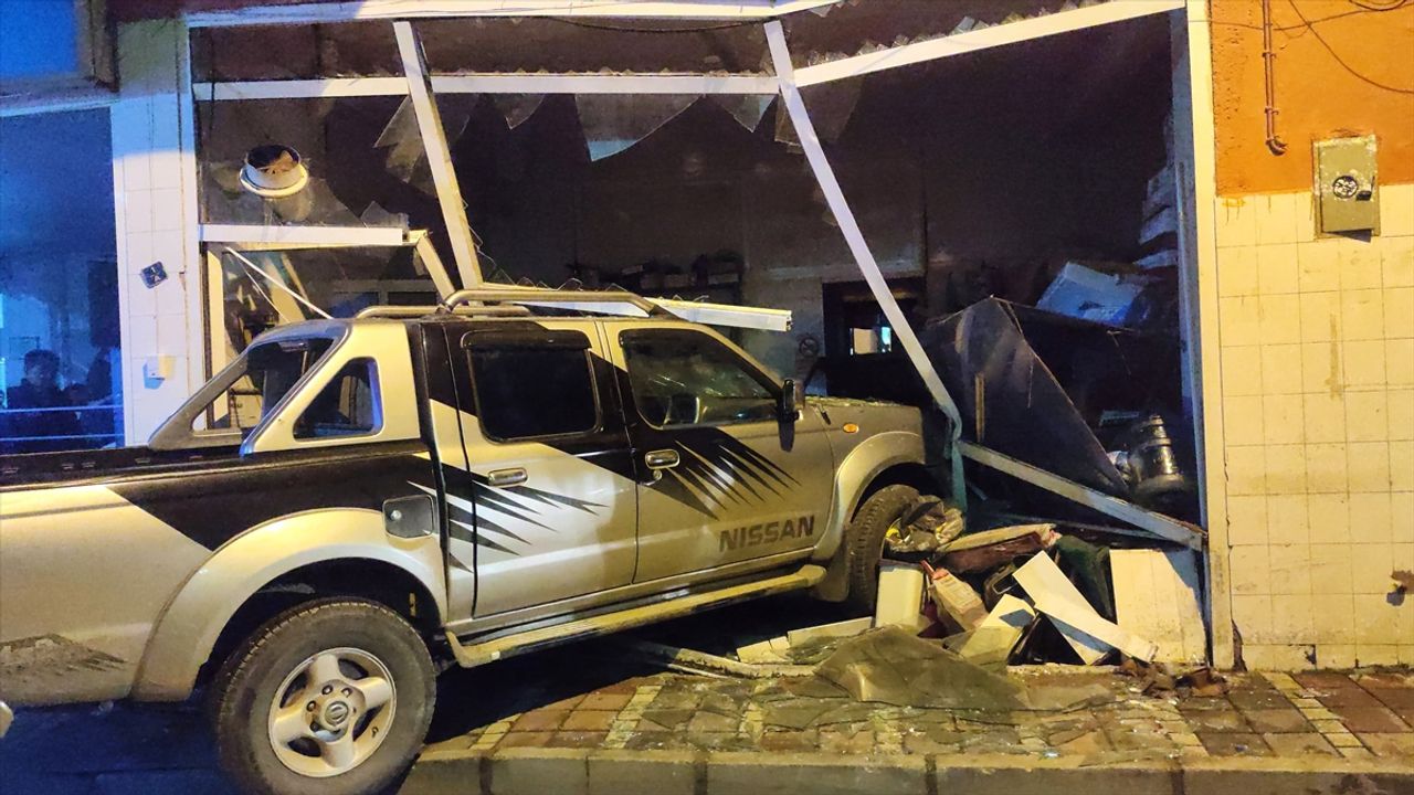 Bengisu Mahallesi Gazi Caddesi'nde seyreden Buse M. idaresindeki 35 ZOD 73 plakalı pikap, Türkocağı Sokağı'na dönerken, önce park halindeki motosiklete çarptı, ardından bir tüp bayisinin deposuna girdi.
