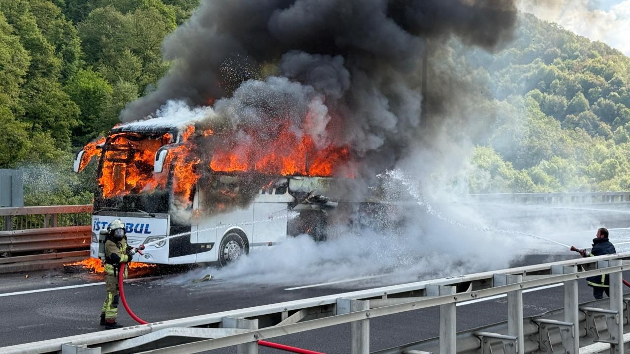Durumu fark eden sürücü, otobüsü sağ şeride çekerek yolcuları tahliye etti.