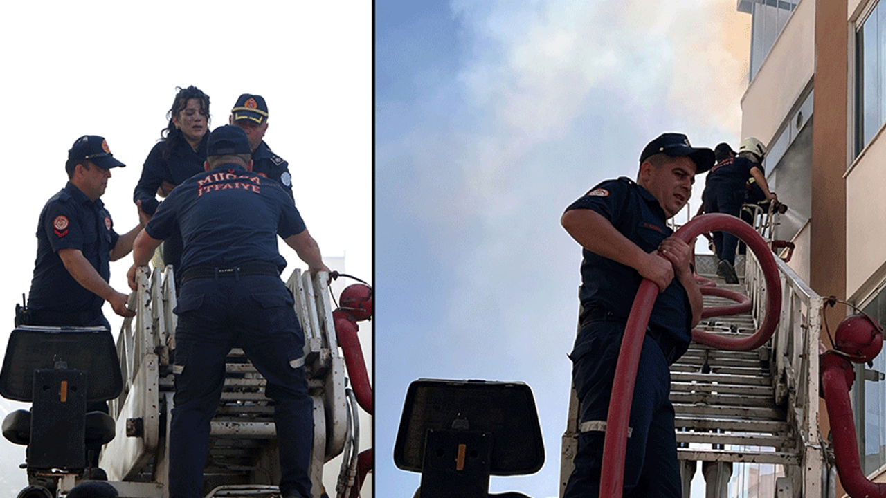 Yoğun duman nedeniyle binada mahsur kalan kadın, merdivenli itfaiye aracıyla dairenin balkonundan tahliye edildi.