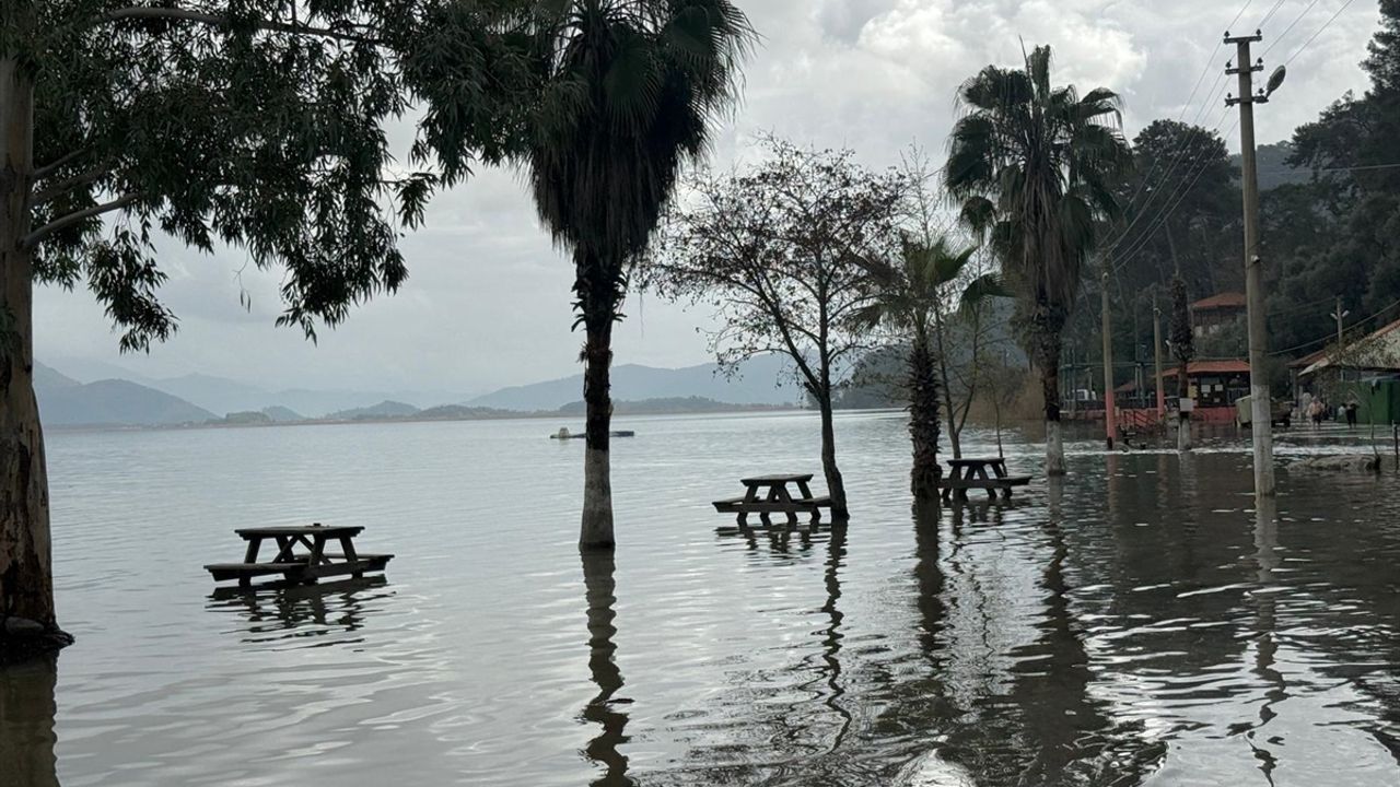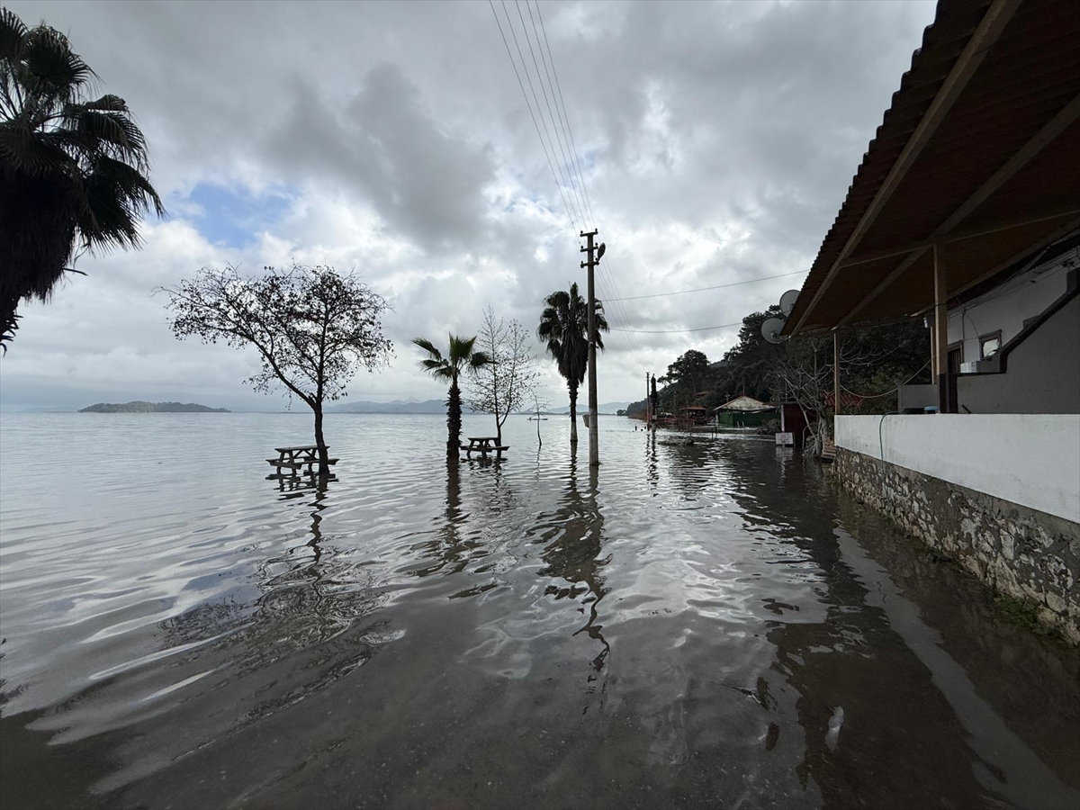 Köyceğiz ilçesinde etkili olan yağışların ardından su seviyesi yükselen Köyceğiz Gölü'nün kuvvetli lodosla taşması sonucu bölgede şifa kaynağı olarak bilinen Sultaniye Kaplıcaları ve çamur banyoları sular altında kaldı.